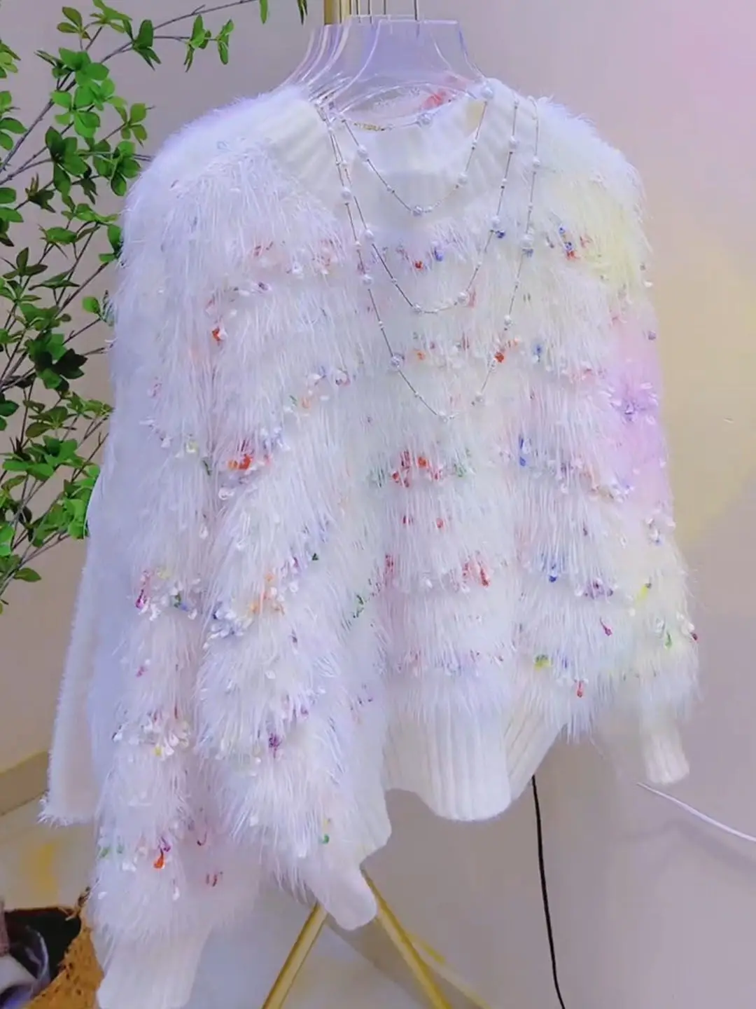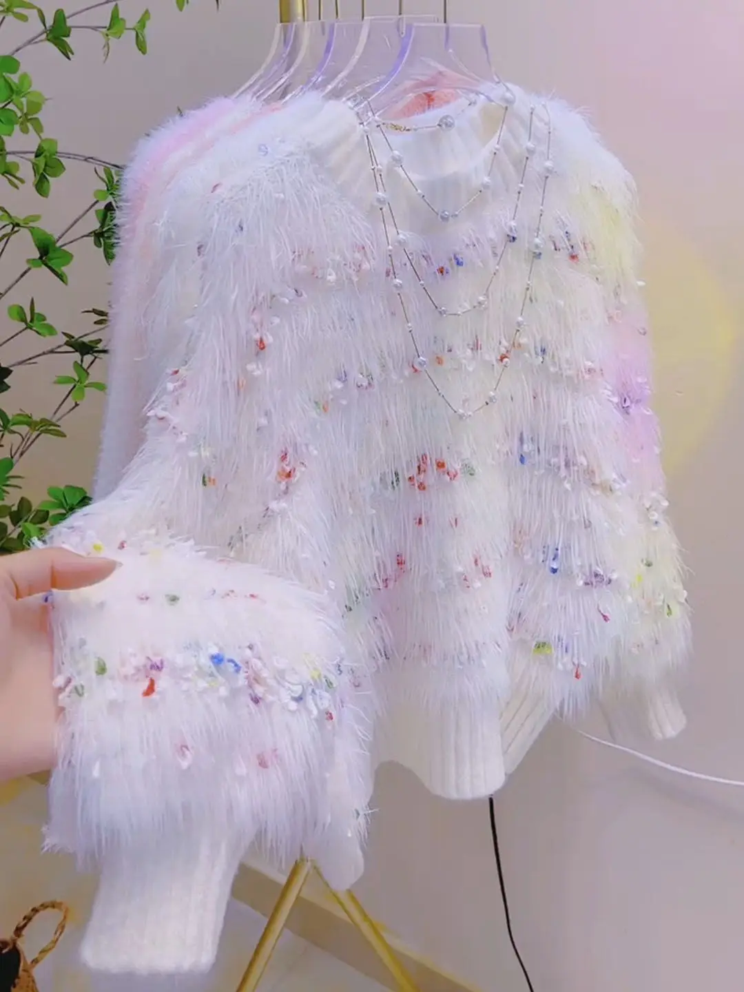 Colorful Dot Knitted Soft and Thick Sweater for Women in Autumn and Winter Slim Korean Version Loose Top